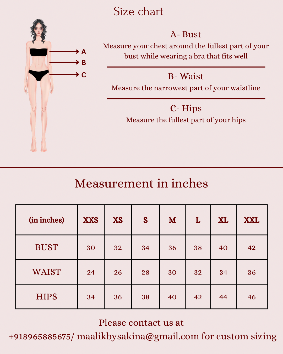 -this product can be customised by size,design and colour. Please contact us at +918965885675. You can also DM us on Instagram @malikbysakina