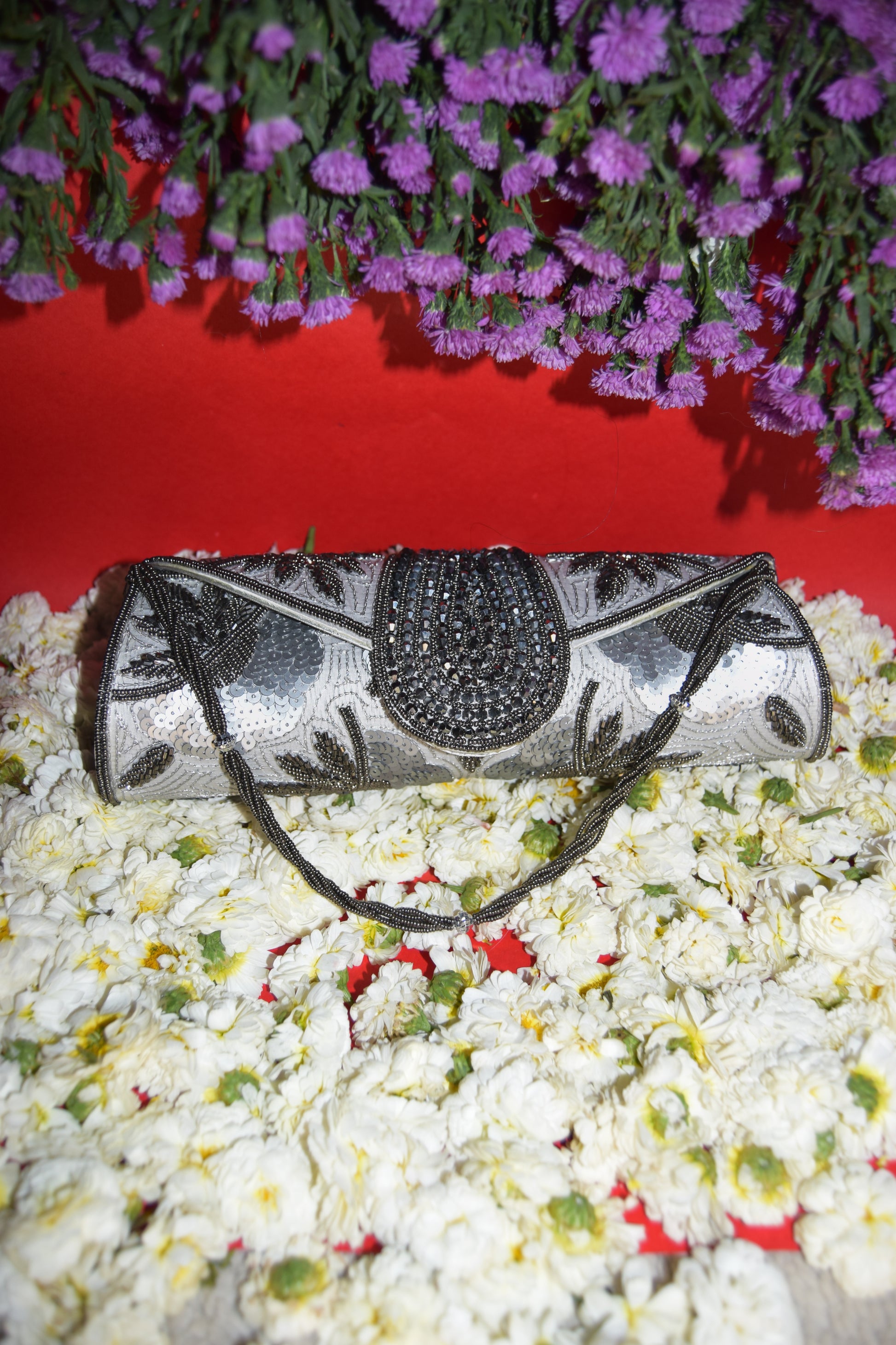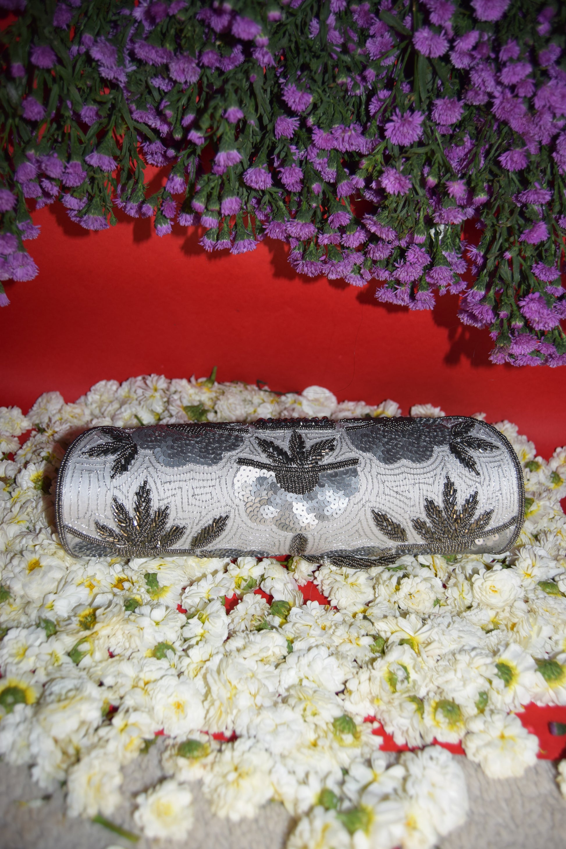 Hina is a dazzling cylindrical sling brought to life with all-over sequin, moti, and katdana handwork. Comes in three luminous shades — Gold, Silver, and Baby Pink. Paired with a moti handle and a detachable metal chain for versatile styling.